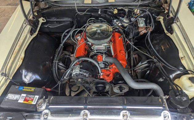 We’re told the Bow-Tie runs and drives great with some mechanical work done. It may now have a 4-barrel carburetor and intake manifold, dual exhaust, radiator with twin electric fans, alternator, and more. You can cruise around listening to tunes on the retro Bluetooth radio. The interior is basic stuff, and some of the threads are coming loose on the front bench seat.
