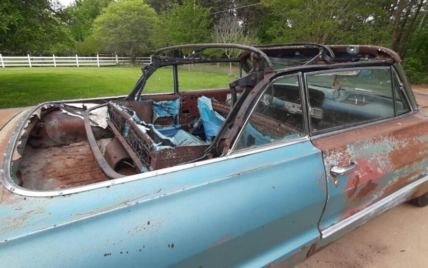 Aside from the “to me” ridiculous prices for rough copies. The chassis is likely fine. At one time late 50s convertibles were the rage in Europe and hundreds of cars in this condition rolled into containers and whatever other ways they could be shipped. My first car was a tired old 64 convertible. a northeast 300.00 rust fest in 1978. The car took me through high school and on into life until an idiot ran a red light and took out the left side. The insurance company at the time”other guys” gave me what I thought was a very decent payout for the car. By 1985 a fully optioned 64 Impala had some decent salvage items on it as few rolled off the line with ac, cruise and all the other unusual items offered that year. I debated junkies it but knew if I did I would never find another. I knew nothing of repairing it then so I cleaned everything off boxed. cataloged and stored it. Right now the shell is in my shop coming back to life. My car is no better than this one to me but unlike in 1985 when everything had to be sourced from salvage, the internet did not exist, reproduction items were in their infancy. Today these cars are like Mustangs, EVERYTHING is available except for some of the tough stainless items. This car is an easy fix for even a novice in today’s world. The only killer is the high price for which should be a 1,500.00 to 2k project “to me” but I’m older from a different time and I get that. This will make a great car whether it gets the hip hop LS or the 327/ 409 route. From the bids others see it as I do. I enjoy building junk into cars. Some of my best were castaways and I’m not in it for the money ” I have a job and portfolio for that”. Whoever gets this I hope it and my 64 pass on a road somewhere in the not so distant future.