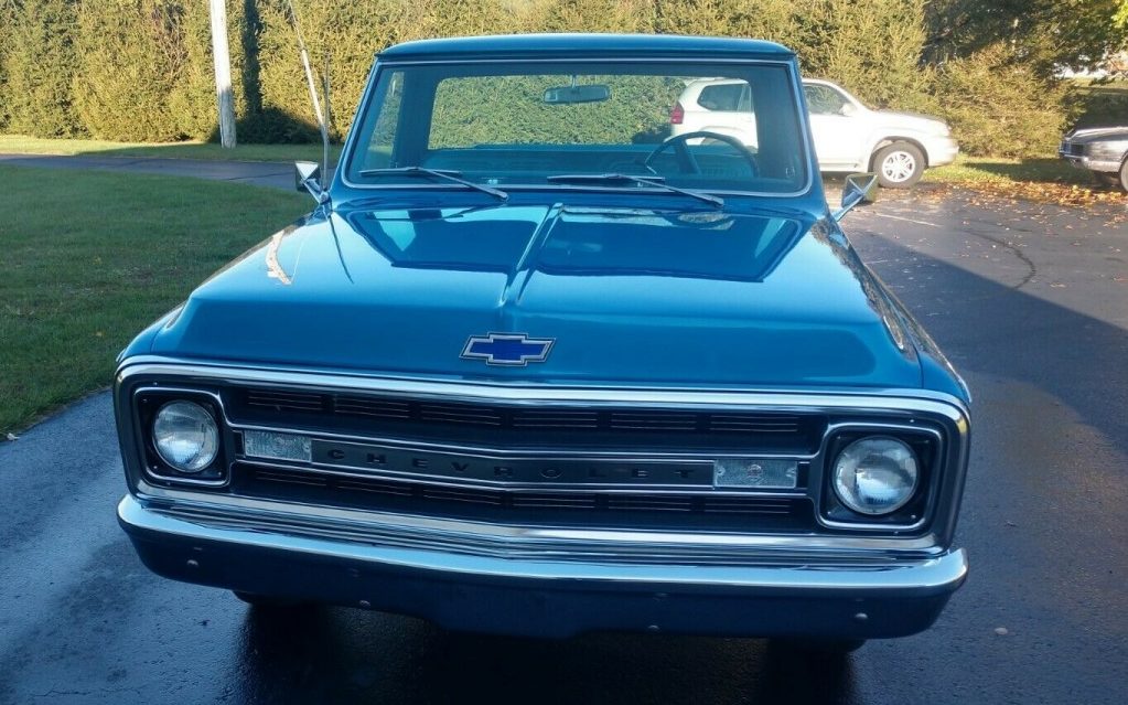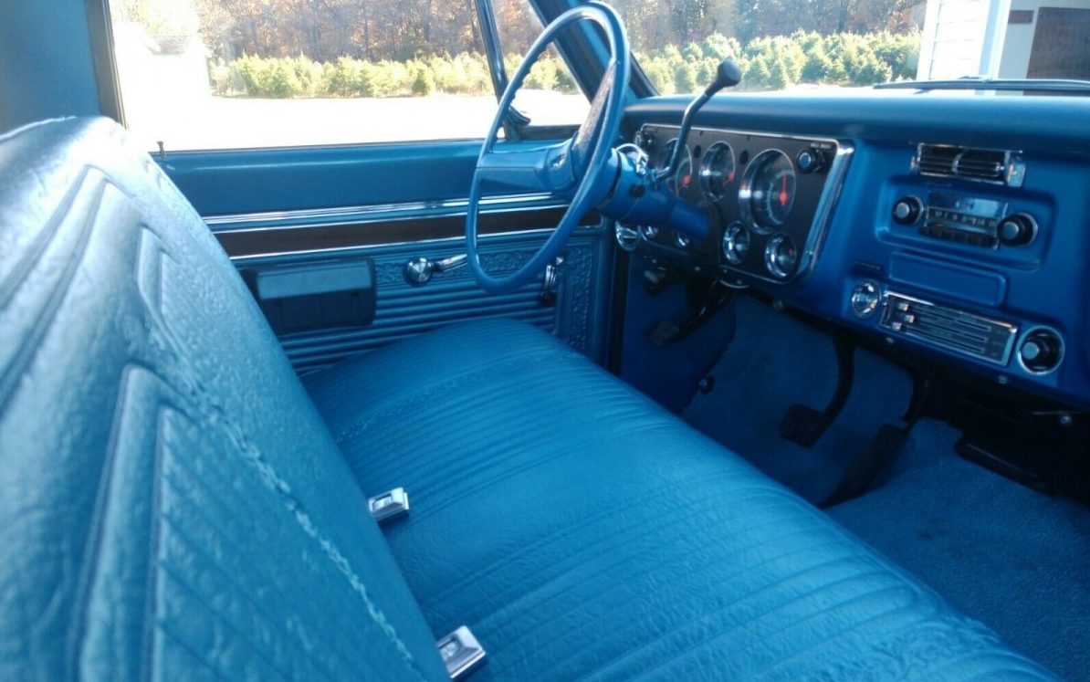 The body of this Chevy is perfectly straight though the bedsides, front bed panel, and tailgate are replacements. The side trim is new and the refinishing as done in the original hue, of what appears to be code 501, Medium Blue. The small, white “doggie-bowl” hubcaps are a welcome relief from the vast variety of au courant wheel options usually found on an old truck today – they cap off the vibe perfectly. The seller adds that there is “nothing hiding here” and I would have to agree, suddenly it’s 1970 again.
