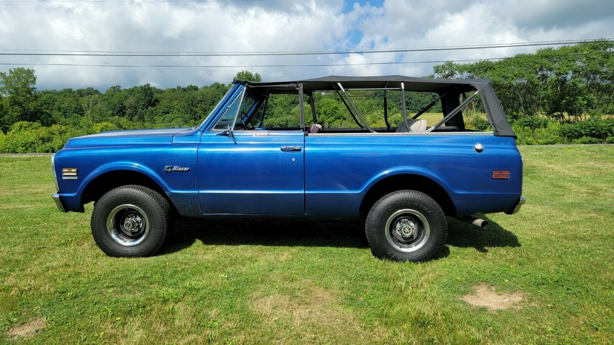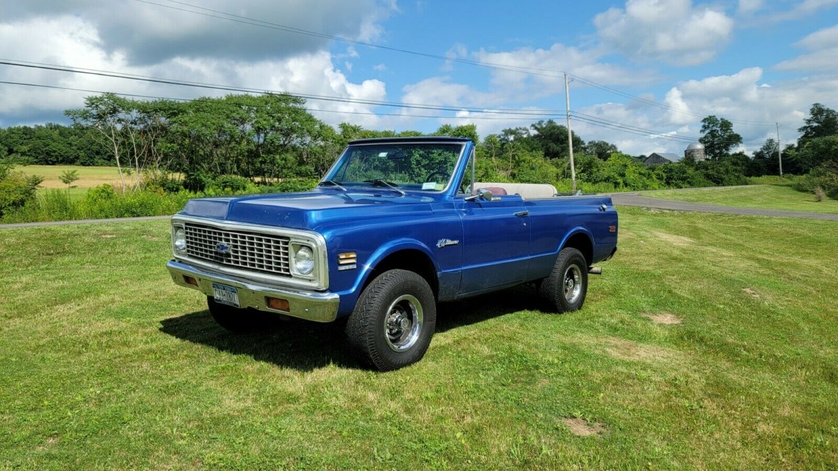 Four wheel drive Chevrolet Blazers are popular and many enthusiasts love the front egg crate grill on the 1972 model. This K5 Blazer is equipped with the factory Chevrolet rally wheels and oversized aftermarket tires. The seller states that the truck runs great. It looks great with the top down.