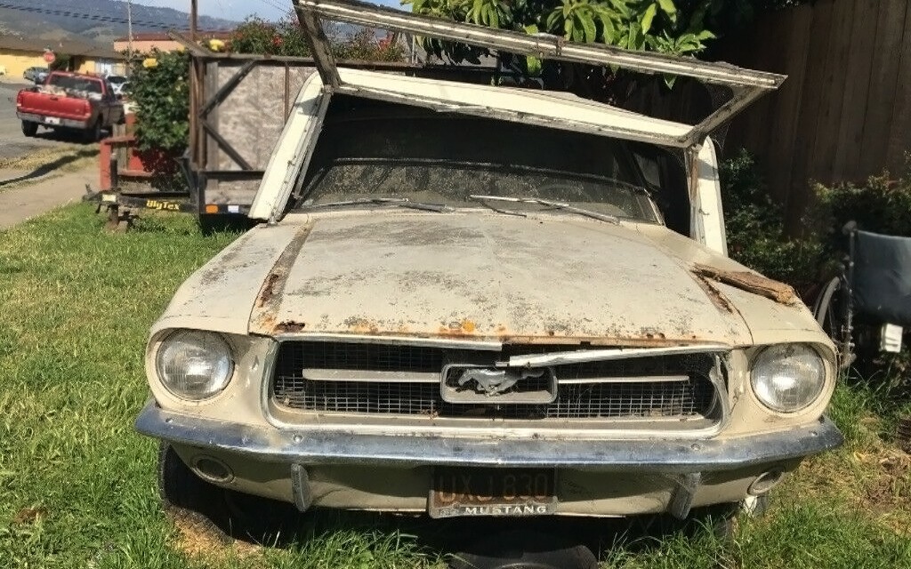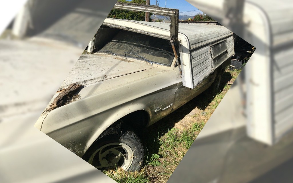 I’m kidding about topper-find, of course, and there’s no word on whether the topper goes with the sale of this 1967 Ford Mustang parts car. When this car isn’t trying to hide under a topper, it can be found here on eBay in Salinas, California. There is a single bid of $500.