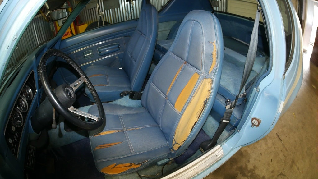 “Optional was a Levi’s interior trim package, which included spun nylon upholstery made to look like denim (fire safety regulations prohibited the use of real cotton denim).”