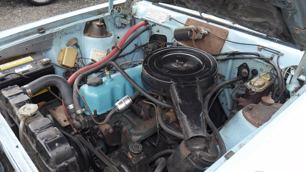 We don’t know if this is the 232 or 258 cubic inch version of the AMC inline six cylinder engine, but either one has enough spunk to propel this little car adequately. You may see some air conditioning equipment in there; the car was fitting with under dash air conditioning (I remember my father having an A-R-A system put on our 1971 Hornet) and it’s not currently functional. Are you up for some jeans anyway?