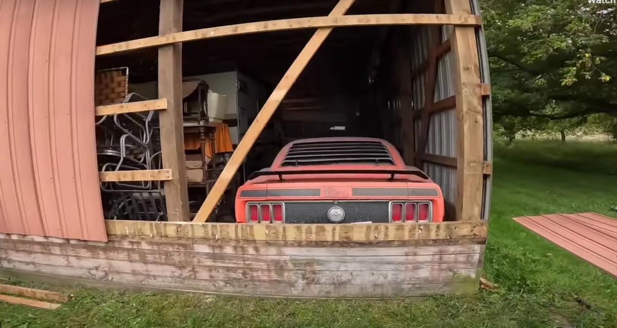 A barn-find hunter got wind of a Mach 1 that was held captive in the middle of rural Michigan. He had been wanting one of these muscle cars for himself, not something to flip that would keep driving up vintage car prices. Upon arriving at the scene, the car’s savior determined that digging the auto out the “regular” way wouldn’t get the job done. It was in the far corner of the barn, and you’d have to take everything else out to get to it. That would include another buried car, an RV, a tractor, and tons and tons of anything else you can imagine.