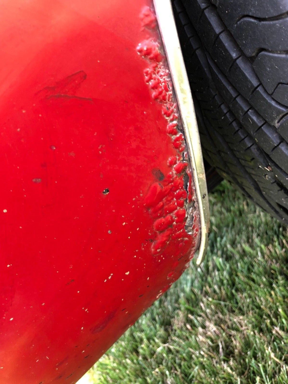 Full credit must go to the seller on this car. They have given potential buyers a “warts and all” description of the car. The paintwork is all that you would expect of a car that is 50 years old and has 146,000 miles on the clock. The paintwork has chips and scratches, and the seller believes that the passenger side front fender is not original. As you can see from this photo there is also some rust and corrosion present. Unfortunately there are no shots of the underside of the car, so it would need a fairly thorough inspection to ensure that any corrosion is not too extensive. All exterior chrome and bright-work appears to be complete and in fair to good condition. This Cobra was also optioned with tinted glass which is all present and in reasonable condition for its age with no significant chips or scratches.
