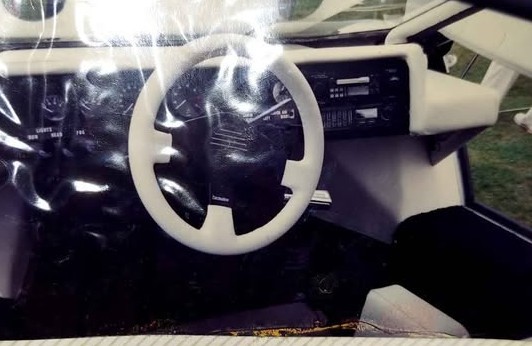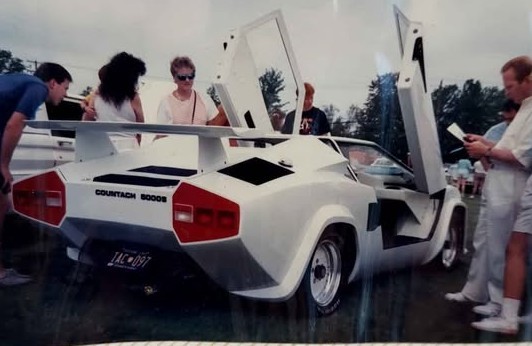 Now, the interior is interesting: the dashboard and gauges aren’t just lifted from an air-cooled VW, and fit-and-finish looks decent (keep in mind, these are old photos-of-photos, so it’s impossible to say for sure just how high quality it is. The details seem encouraging, however, like the white leather wrap on the steering wheel and the (leather?) covered dash. The radio controls seem clean and not gaudy, and I’d like to think it has a set of period-correct Recaro seats installed; however, we don’t get to see what the front buckets look like. It makes me wonder just how rough the Countach kit has become in the years since it was last shown.