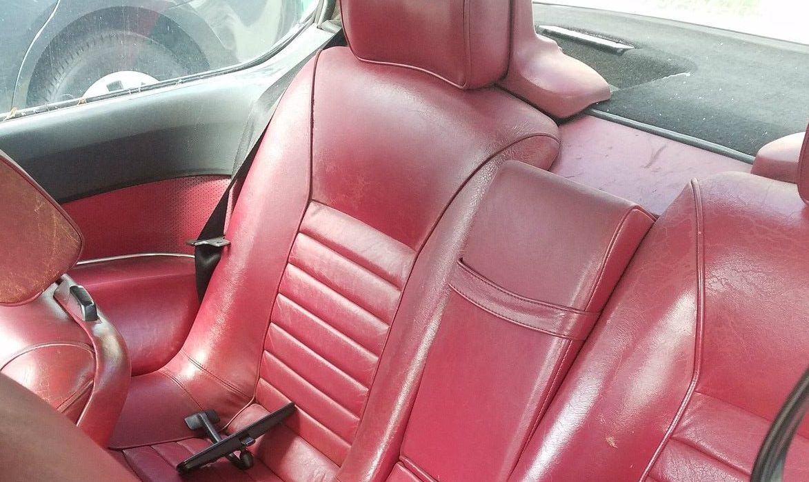 Out back, the car comes with the rare and desirable rear headrests, which were an optional feature that not many U.S. cars came spec’d with. The backseat is in nice shape, along with the door panels. Outside the car, the paint is quite rough and the front valence is nearly ripped off. It’s hard to tell, but there does appear to be some rust bubbling beneath the taillights, and the seller doesn’t elaborate at all as to whether car runs or drives well. Assuming it does, there’s a fair number of parts here that makes this car a potential part-out target.