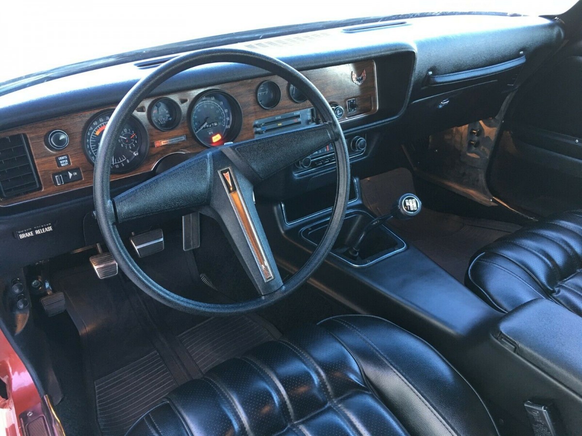 The Firebird retains its original Firethorn finish, and the seller notes that other than washing the car, no major detailing has been performed. In addition, the original graphics remain attached and in excellent condition. All glass remains original to the car, and the seller notes the various mouldings and attachment parts like the rear spoiler show no issues, either.