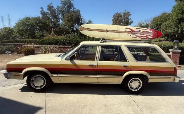 We’d like to thank Barn Finds reader Tony Primo for the tip here! It’s not unusual for television promotional cars not to be equipped with the highest level of trim, and this one didn’t come with the Squire package, which would have included the faux wood paneling along the sides. However, somewhere along the way, colorful horizontal stripes were added instead, which probably attract more attention anyway. The outside shows some chips and blemishes in a few areas, but the panels seem solid overall, plus the surfboard does a fine job of drawing your attention away from any body flaws.