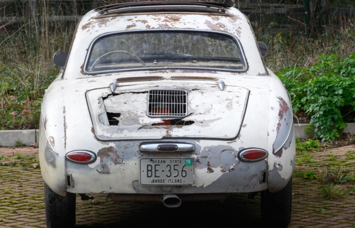 As I’ve mentioned before, I currently live in the Ocean State – Rhode Island – and this custom creation actually wears old-school RI plates of the vanity sort, with the inscription “BE 356” which is surely worth a decent price all on its own. The fact that this highly unusual VW-Porsche creation once resided locally is more than a little surprising to me, considering that any car from this era and of European or Japanese descent has rusted to bits by now, especially if it was in a state of abandonment when it was found. The custom coupe comes with the Porsche engine mounted in the rear and what looks like original 356 taillights. It certainly does have bodywork needs but nothing I’d consider terminal.