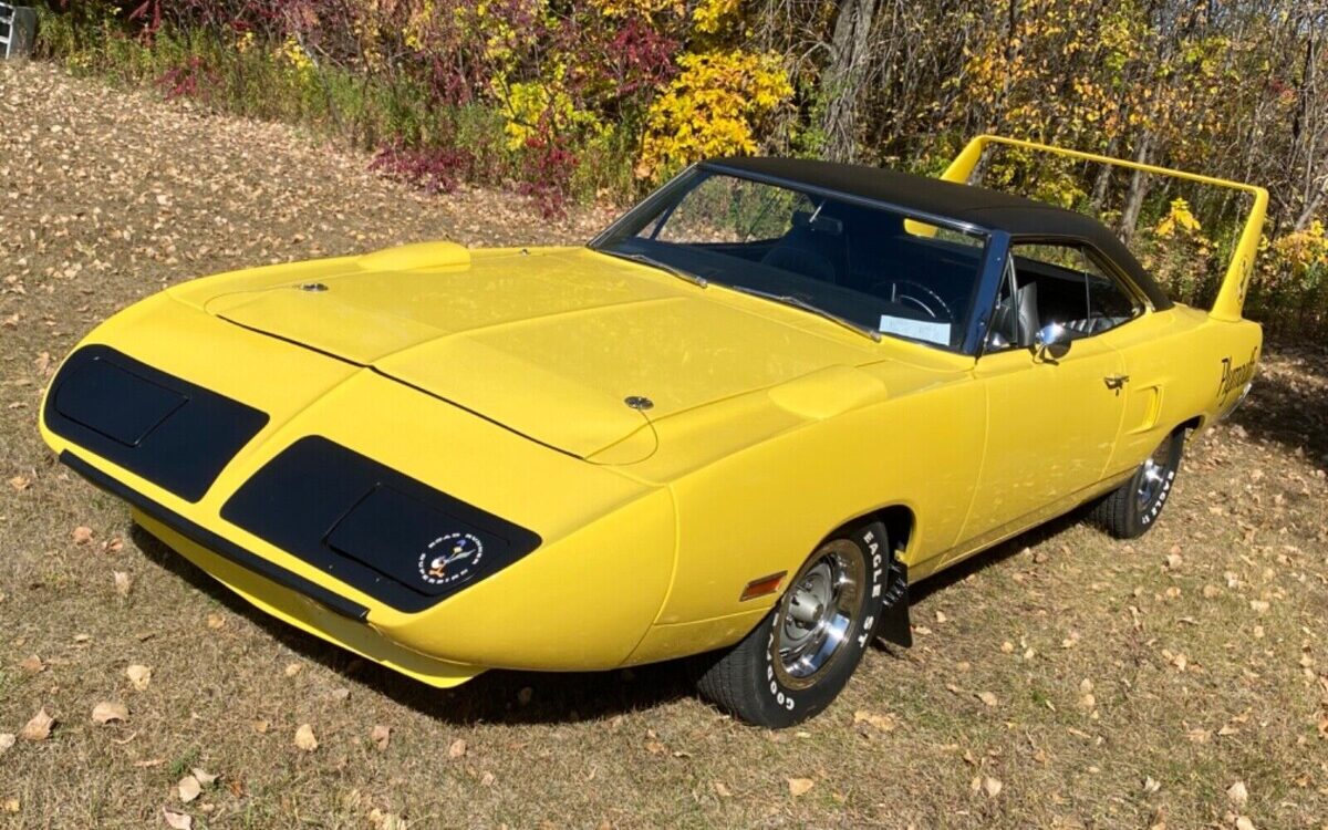 Here is a rare bird indeed, the one-year-only 1970 Plymouth Superbird, for sale or trade on eBay. Located in Prior Lake, Minnesota, this Superbird is one of only 135 Hemi-powered examples. The Lemon Twist bodywork, paint, interior, motor, and other details are show-quality. The asking price is $999,999 or the seller will trade for the same car in Blue Fire or Limelight, even with concessions including a non-original motor or bench seat. The Superbird was homologated for NASCAR like its sibling, the Dodge Daytona. In 1970, NASCAR hiked the required number of dealer-sold cars to achieve homologation from 500 to one for every dealership, resulting in the production of 1935 Superbirds including 35 to 45 apparently shipped into Canada. Sales were woefully slow, and lots were finally cleared by offering deep discounts. The sales performance belied its success on the track, where the car so dominated that NASCAR found a way to ban it by changing construction rules. Of course, Plymouth and Dodge had incorporated a few cheats that boosted performance, such as those reverse scoops on the front fenders. Carving out the bodywork below those encouraged downforce. To hide the purpose from NASCAR, which allowed body modifications only for tire clearance, Plymouth claimed the carveouts were necessary for … tire clearance. Just one more instance of Whack-a-Mole between NASCAR and car constructors.