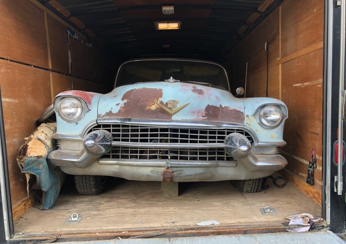 From what we see of the seller’s ’55 Cadillac, the body looks pretty solid. Rust doesn’t seem to be a problem other than maybe a bit of the surface variety. There are no big dents or dings, and the chrome may be complete if you count the assortment of parts that are either in the trunk or passenger compartment. The original paint looks to be light blue with a matching interior, although the car could have been a two-tone when new.