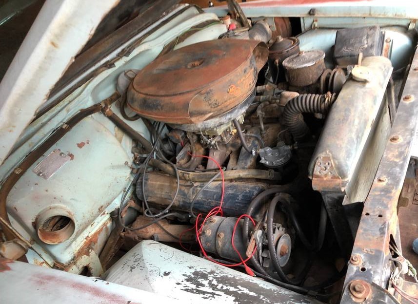 There were two versions of the 331 cubic inch V8 available that year, with outputs of 250 and 270 hp. The difference was the use of a single 4-barrel carburetor as opposed to two. We’re not sure which applies to the seller’s car, but the shape of the intake manifold may suggest the former. The mileage is an indicated 38,000, which could be accurate, or the odometer could have turned over at some point. There is no title with this find, so hopefully a bill of sale will suffice. When restored, these land yachts can fetch a pretty penny, but this one’s going to take a lot of dimes and quarters to get there.
