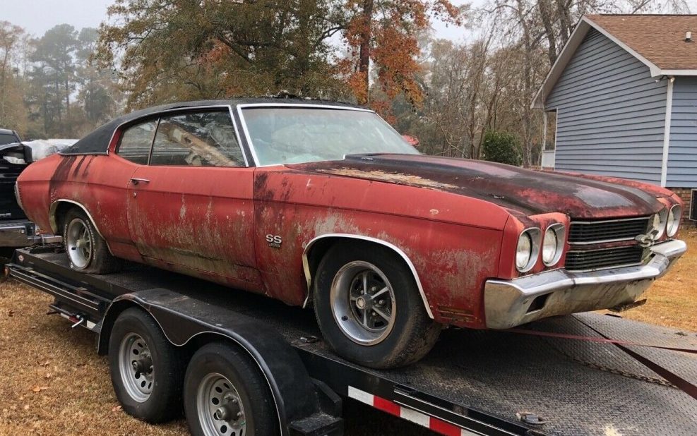 It’s at $15,800 with 5 days left. I think it will go over the BIN figure. I copied this from the ad: “Trailer park find ! Real Deal 1970 Chevelle SS 396 4 speed . Same female owner 45 years . Hasn’t been modified or messed with other than 80 s repaint to current color . Original color Cortez silver . Engine overhauled in 1994 only 13,202 miles since overhauled.car has sat for 20 + years. NEEDS RESTORATION ! Engine is free DOES NOT RUN WILL NEED TOWED/hauled to its new home . Floors& rocker panels are SOLID , NICE FRAME . Top panels are South Carolina sun baked . Vinyl top car , will need roof skin , quarters , fenders ,trunk pan . Still has original exhaust manifolds on engine. original wheels , 12 bolt rear , disc brakes , factory tach ,console delete . Not many left like this … any questions just ask ..”
