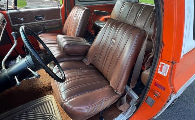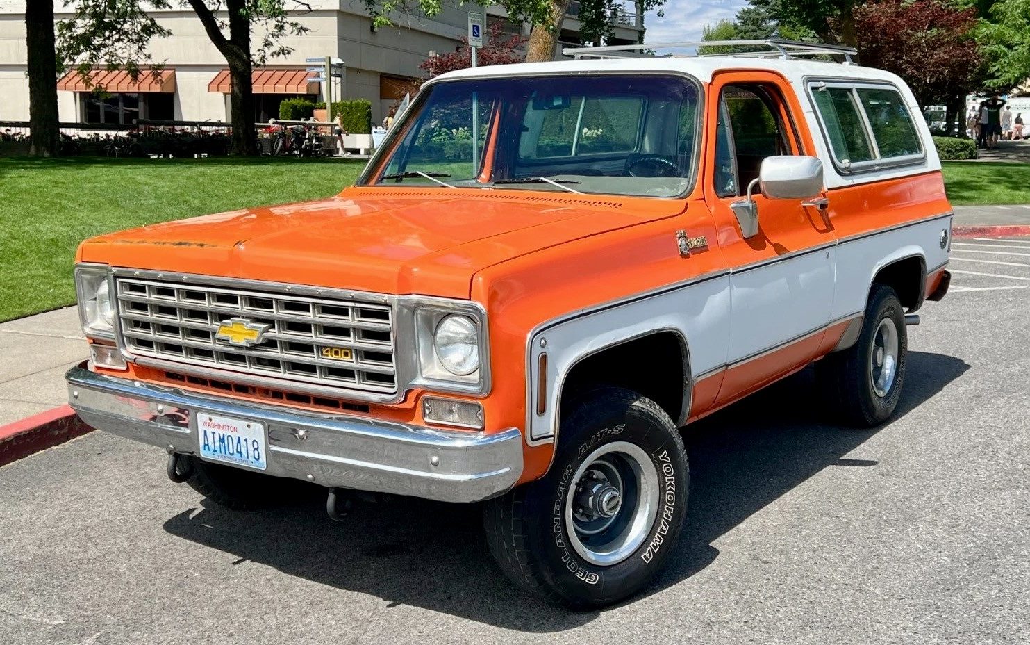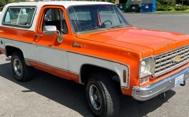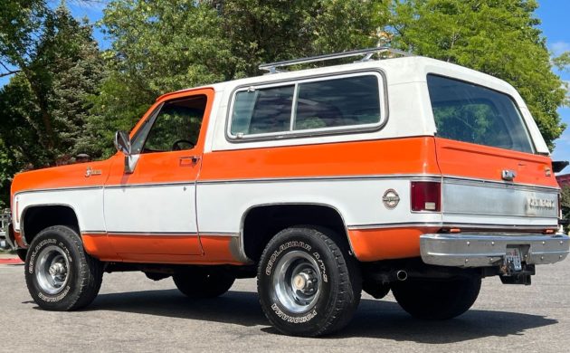 Chevrolet’s K5 Blazer was one of the most versatile SUVs of the 1970s, and this 1976 Cheyenne edition is a well-preserved example with just under 100,000 documented miles. Currently listed here on eBay, this two-owner Blazer comes with its original books, build sheet, and engine rebuild paperwork. Finished in a bold orange-and-white two-tone, it features the “Trailering Special” package and a rebuilt 400-cubic-inch V8, making it both collectible and ready for use.