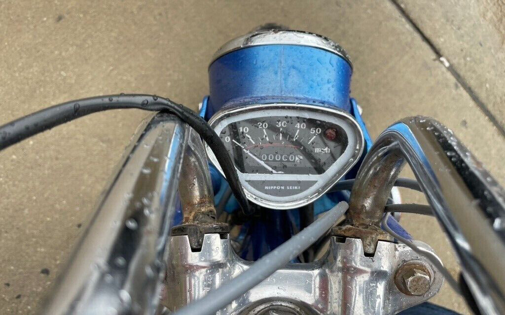 This bike is a bit of a head-scratcher for me. Or, the seller’s description is, maybe that’s it. They talk about the color being Candy Sapphire Blue, which wasn’t a color offered on the “H” version of the CT70 KO. The “H” designated a four-speed manual transmission as opposed to the three-speed semi-automatic model. They say that the color should be Candy Blue Green, which is true.