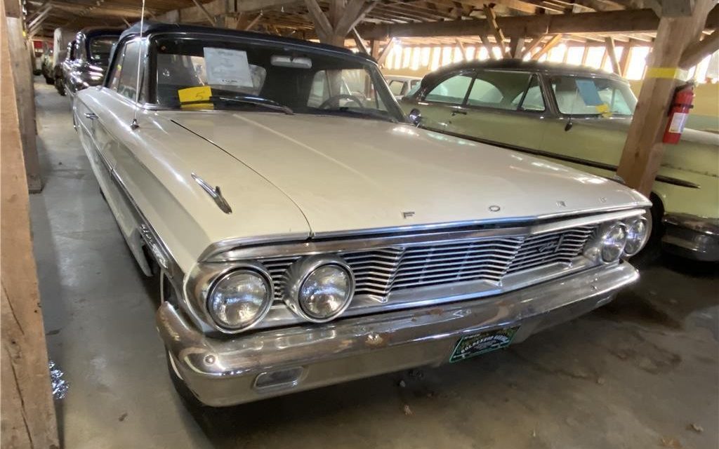 1964 Ford Galaxie Sunliner convertible. Looks like a good driver, finished in Wimbledon White, with a black bucket-seat interior. 352 V-8 with Cruisematic. Power steering and brakes.