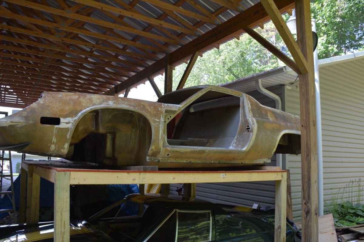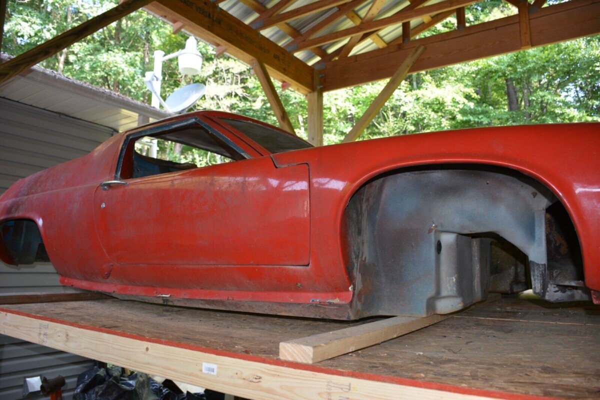 The red ’73 has a rough body, but comes with a bare black epoxy-painted frame, as well as both doors and assorted parts—engine covers and front storage cover. Then there’s an unpainted ’74 with a frame needing some work. It also has both doors and covers. No title.