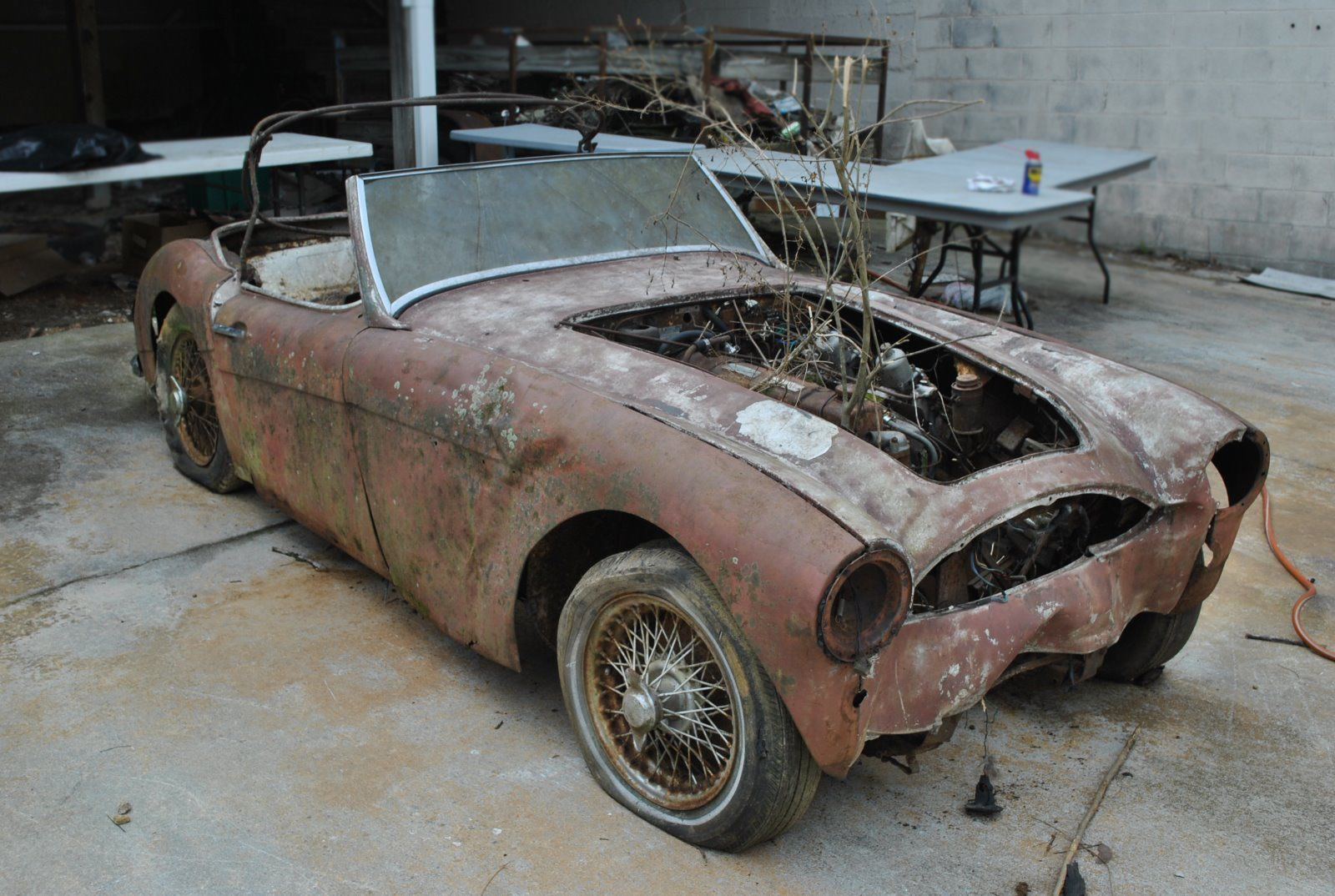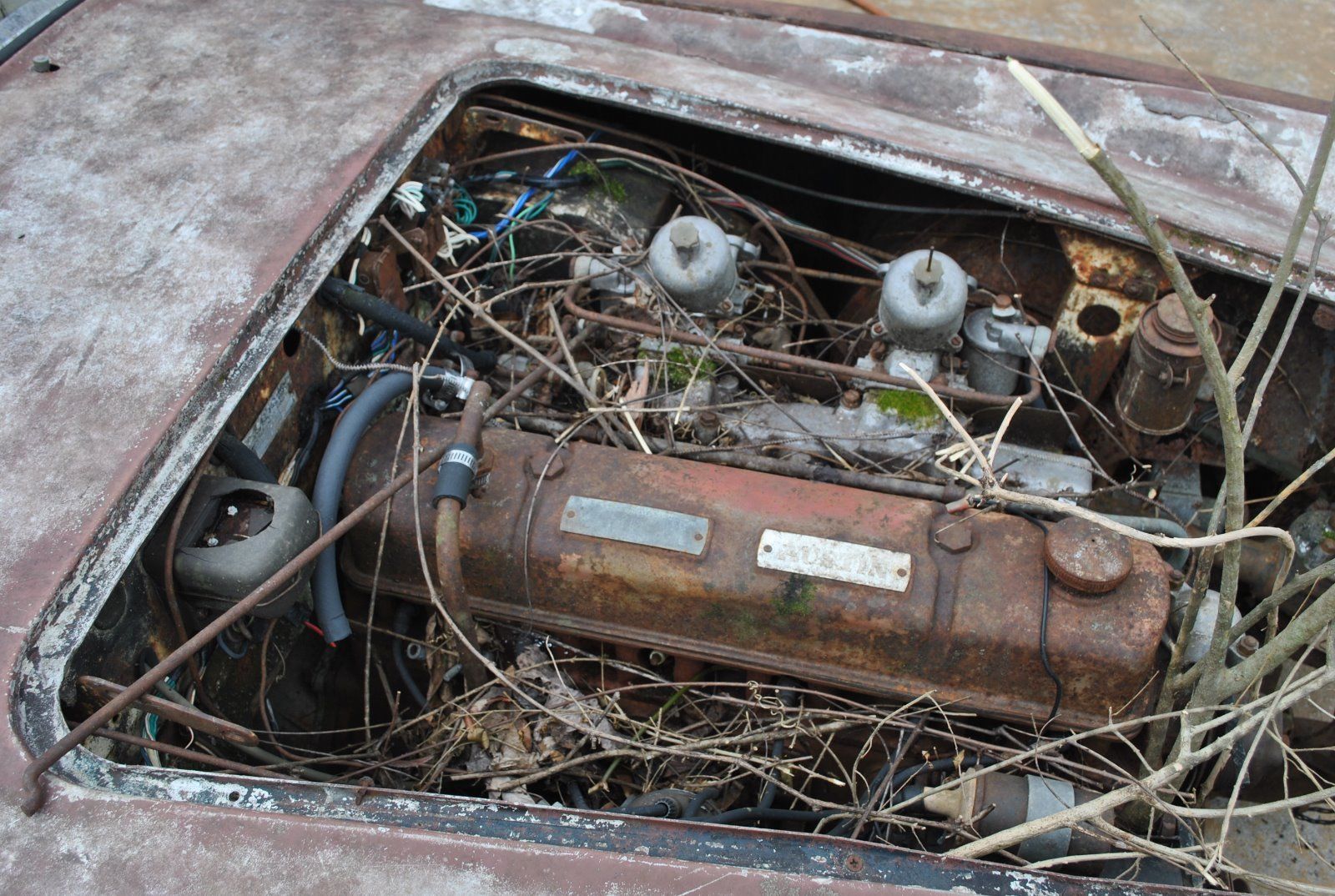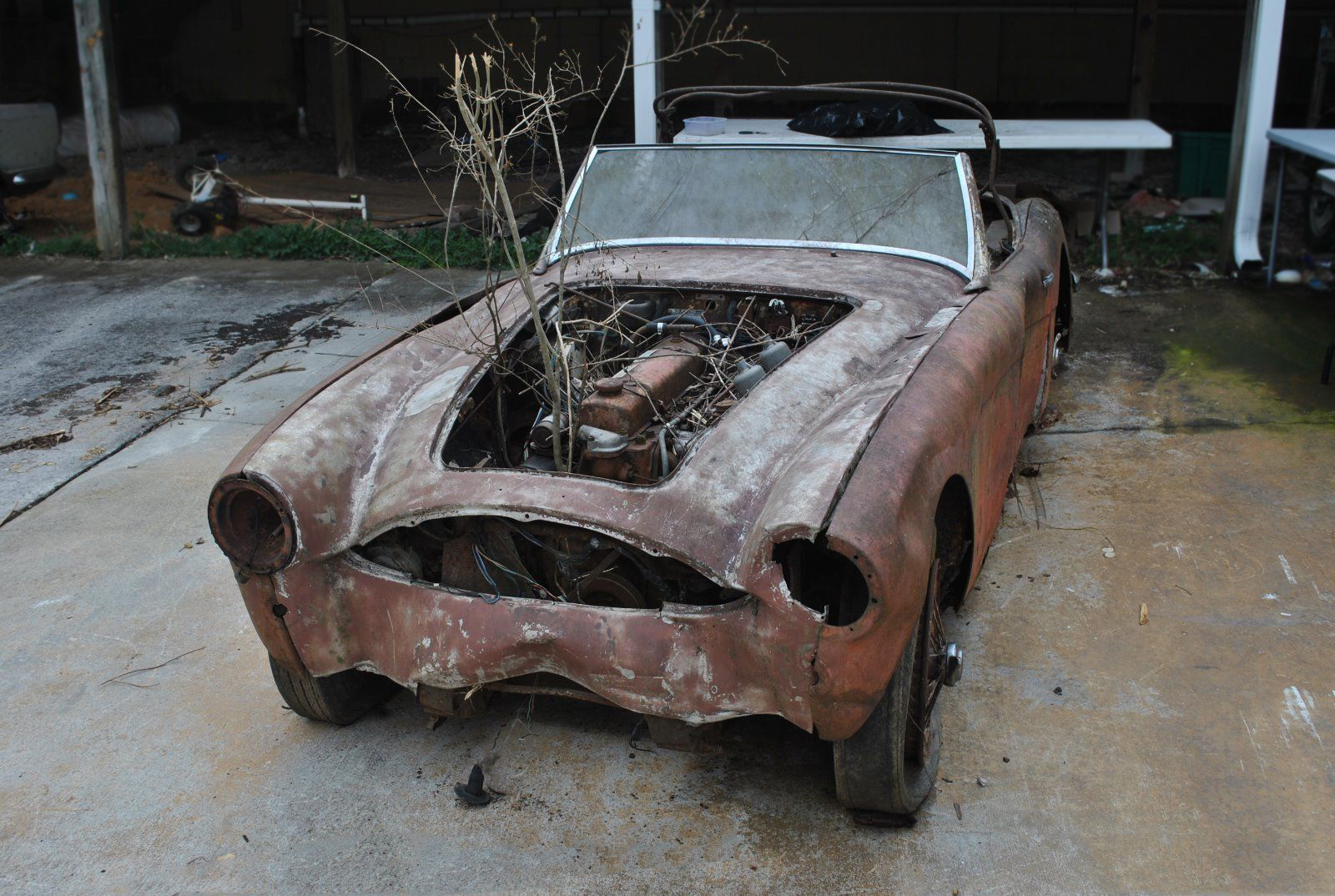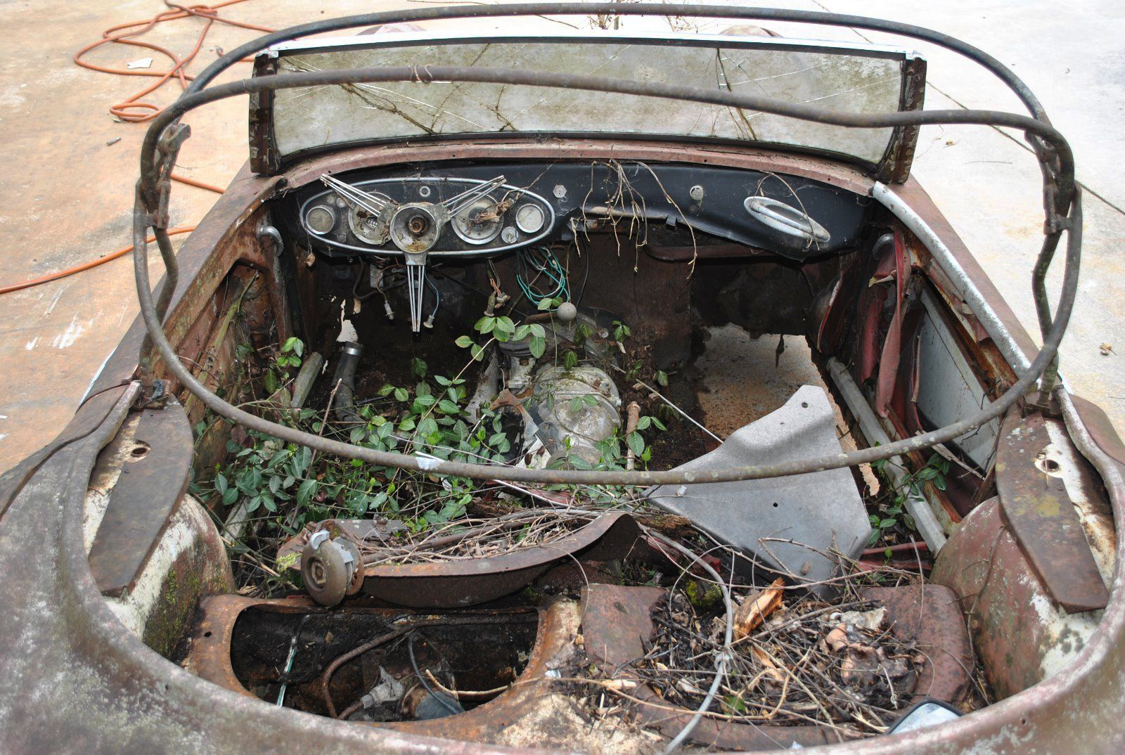 During my younger days, a car friend of mine told me about a boneyard that had a tree growing through an Austin Healey.