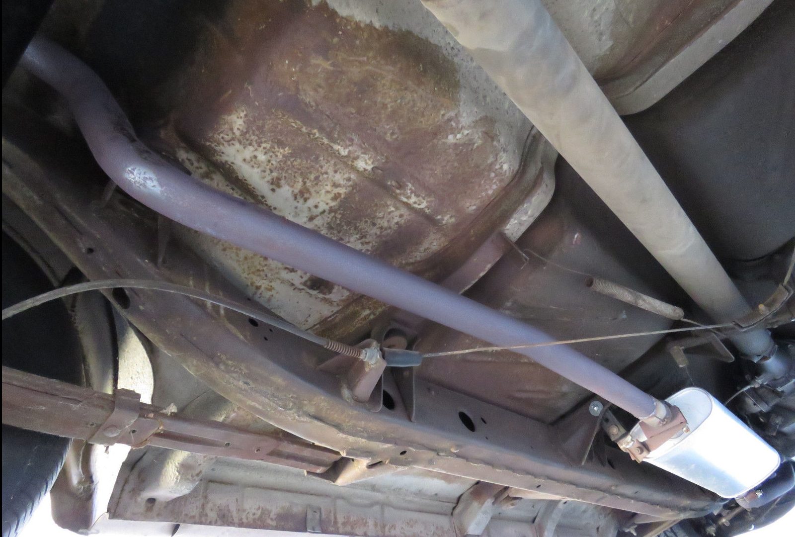 There’s nothing scary under here, just the usual surface rust and a new muffler. Life is good for old cars on the “Left Coast”.