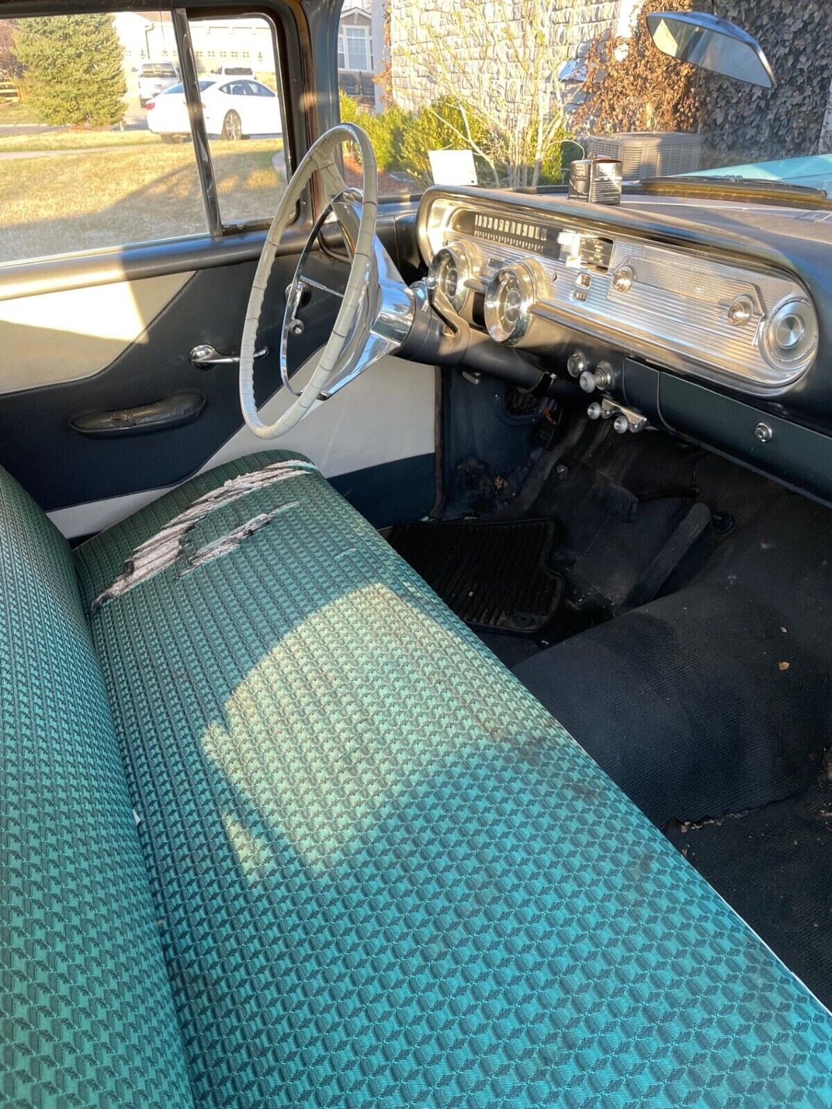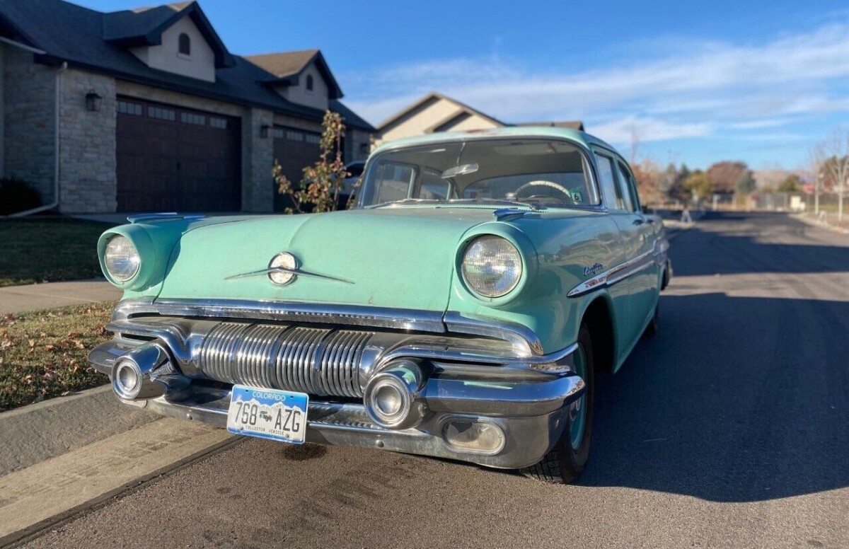 Being an all-new design after WW2, the Chieftain kept a place in the Pontiac portfolio from 1949 to 1958. When the “new again” cars were revealed for 1955, Pontiac had dropped using six-cylinder engines and the V8 was now the way to go. The “Strato-Streak” engine displaced 287 cubic inches in ’55, 317 in ’56, and 347 in ’57 (like in the seller’s sedan). So, a comparable Pontiac of the day should have been a tad peppier than its corresponding Chevy, Styling was refreshed in ’57 with “Star Flight” sculpturing which included missile-shaped trim on both sides.