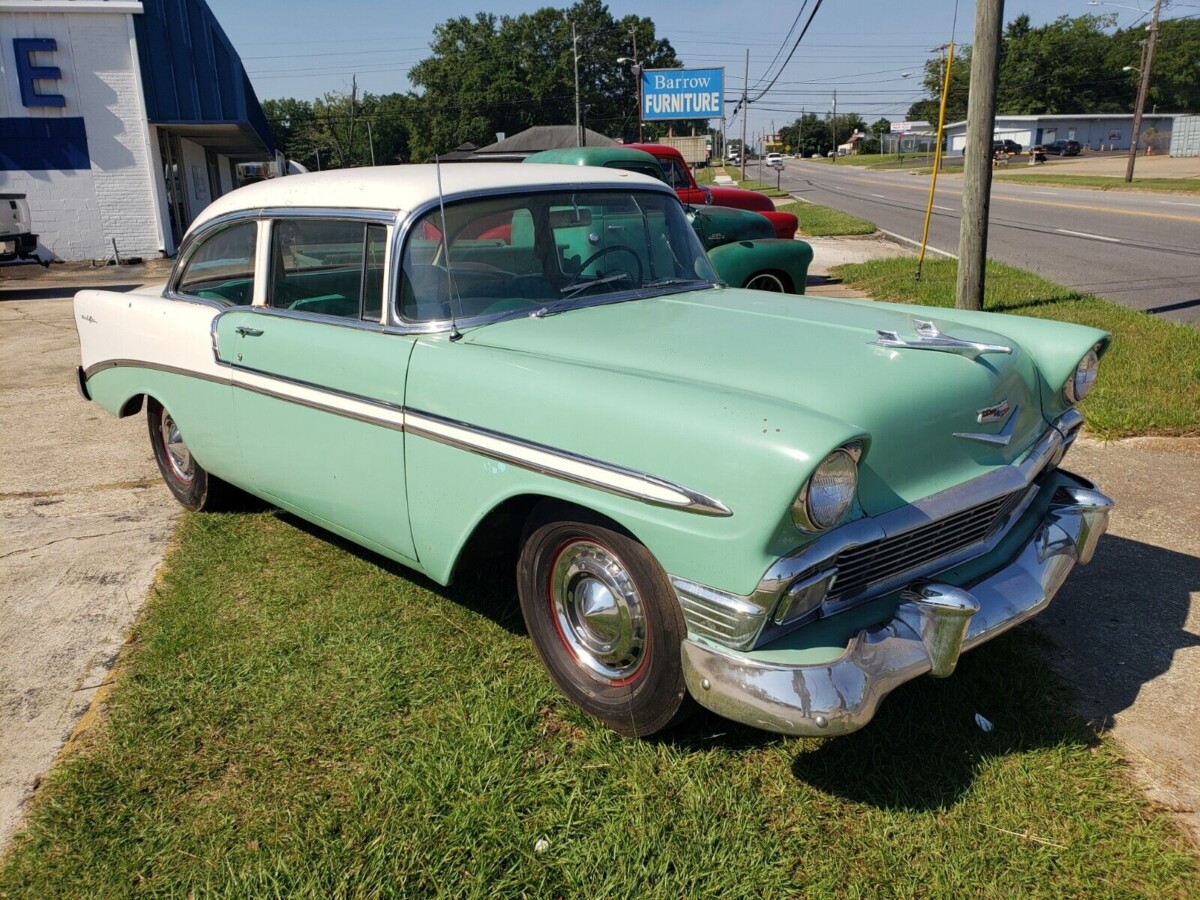 The 1956 Chevrolet was akin to a middle child. By today’s standards, the first year of the “Tri-Fives” was like the first born, and the third year was like the last born, leaving the middle year to sometimes get overlooked. The ’56 models had a less dramatic restyle than the ‘57s, but still sold more than 1.6 million copies and continued to keep Chevy in first place over Ford. This Bel Air 2-door sedan is original except for an older repaint but should perform nicely for occasional use. Located in Dothan, Alabama, this 2-tone 2-door sedan is available here on eBay where the bidding has arrived at $17,800 without triggering the reserve. Another nice find brought to us by Larry D!