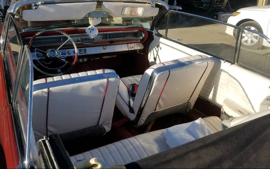 The listing proclaims, “very clean and complete all original classic!” so we’ll run with the assumption that this 57K mile convertible is still as initially intended. The finish, which looks like Garnet Mist, shows no defects, as does the stainless trim, chrome bumpers, and body panels. The seller claims that his car has been always garaged, and it looks like it. Ditto the white convertible top and I can tell you from experience, just look at one of those the wrong way, and it will show a smudge of some sort. The full wheel covers, with their tucked-in spinners and accompanying white stripe tires, complete the early ’60s vibe.