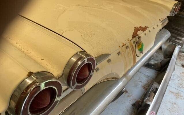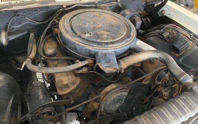 Though it’s not a runner, this Tin Indian is in possession of its original 318 gross HP, 389 CI “Tri-Power” V8 engine and it appears to be complete and original. The mileage recording is 85K but there’s no claim of authenticity. Will it, or will it not run? That one’s unknown and it will require some investigation to make a determination – it would be helpful to know if the engine will turnover by hand. Gear changing is handled by a Hydramatic automatic transmission.