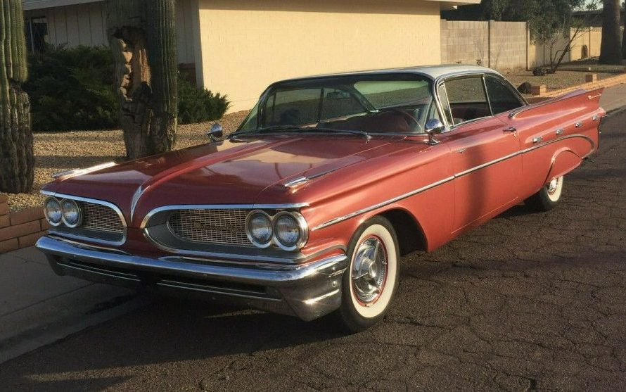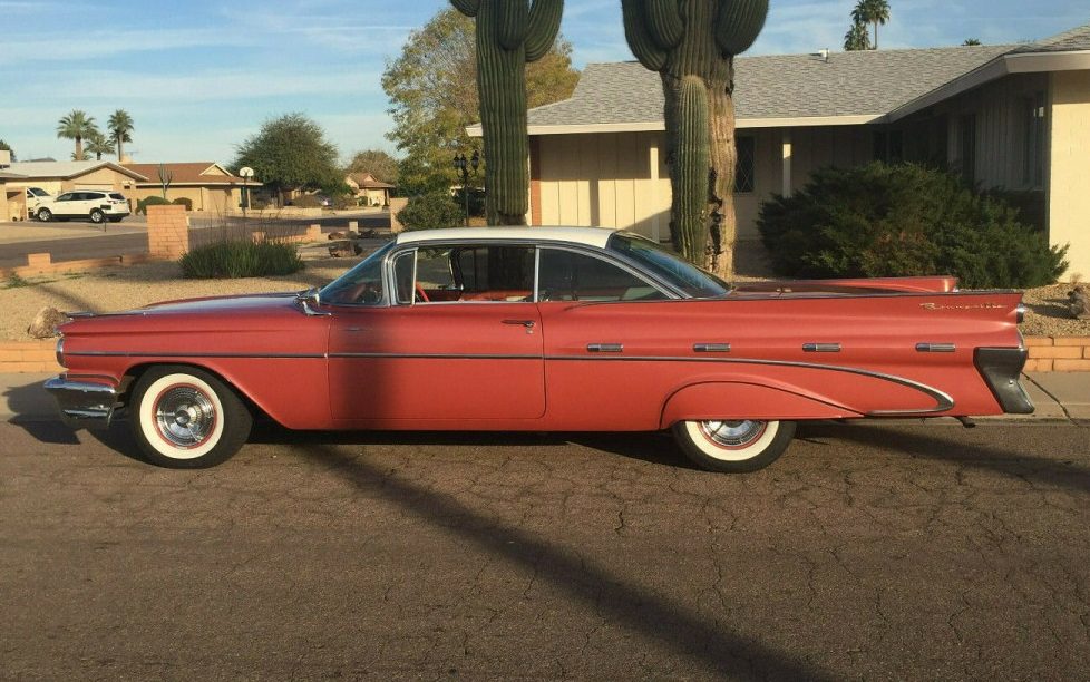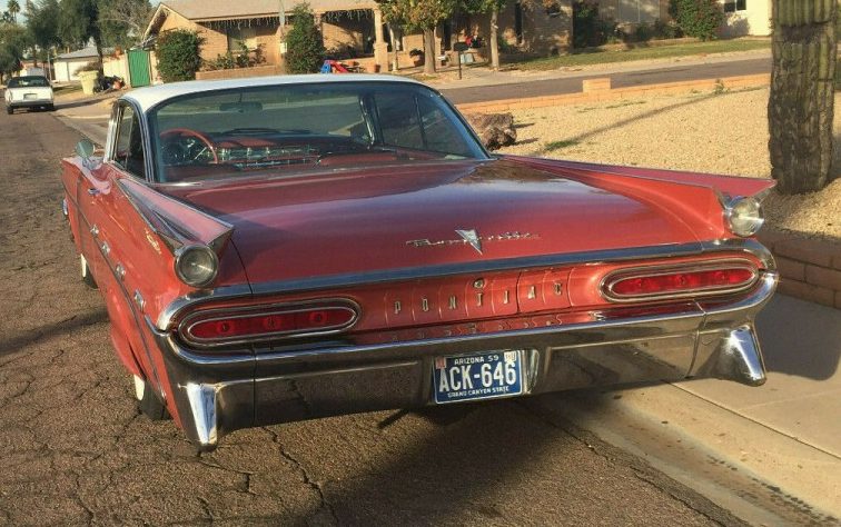 If you had to pick an automobile that was most representative of 1959, I guess it would be hard to one-up a Cadillac Coupe de Ville. Of course, lowly Chevrolet would get an honorable mention for its batwing/cat eye derriere. When it comes to interiors, however, a Pontiac Bonneville, such as this example’s inside digs would be serious competition for all comers – not that the exterior is any shrinking violet of course. Stay tuned and I’ll show you what I mean. This 1959 Bonneville is available, here on eBay for a BIN price of $60,000 and is located in Phoenix, Arizona.
