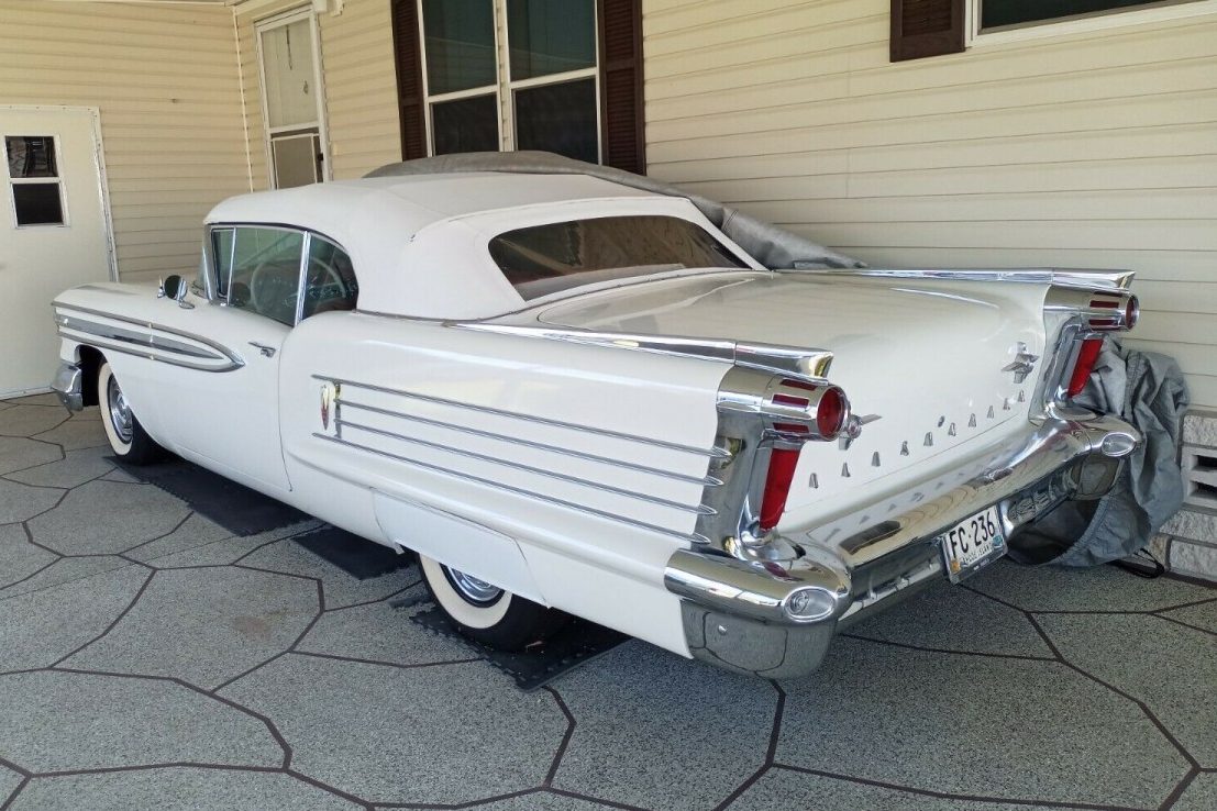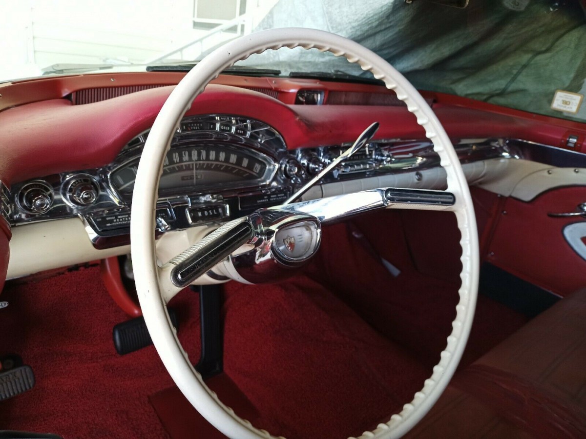 From the eBay ad – “1958 Oldsmobile Super 88 convertible, in good original condition not restored. In very good mechanical condition, new brake system, rebuilt electric system, supension (sic) system gone through including new tie rod ends, ball joints, bushings, bearings, and shock absorbers. New convertible top, rear window, pads, and hydraulic lines, rebuilt power top pistons and pump motor. New carpeting, and Coker wide whitewall tires, new chrome bumpers and stainless steel trim accents where needed, electrical system gone through everything is working.”