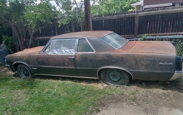 To sweeten the pot, the seller is throwing in a 389 “builder” with an extra 4-speed. This is said to be a complete car with a straight body and rust that may be limited to the bottoms of the fenders. But plenty of surface rust is there to be had. And at least one window may be broken out. The exterior paint was once blue and the interior finished in white, which should have made a striking combination back in the day. Given the unknowns of the drivetrain and what little we see of the body and interior, this is a project that will consume both time and money.