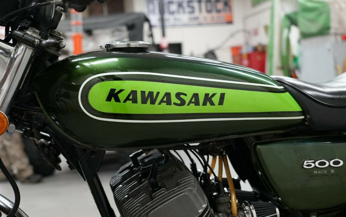 The early 500 triples (‘69-‘70) were H1s and had white fiberglass tanks. Those had really unpredictable and “exciting” powerbands and flexy frames and swing arms. Later models had steel tanks of various colors and graphics, and the last ones (around 74-75) were KH500s with smoother power bands, stronger frames front disc brakes, etc. Those were still quick, but much more rideable than the first ones.