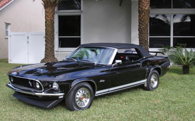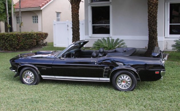This is a very nice 1969 convertible. One of my favorite model year Mustangs. Very sharp in triple black. I agree with Azzurra, for me the restoration is a bit overdone (add the aftermarket steering wheel to his list). I do like the car.