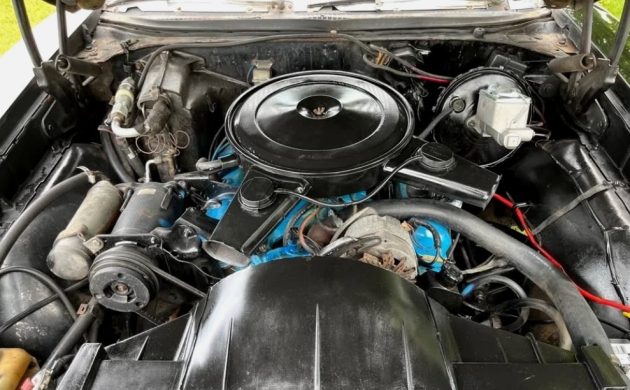 From a peak of 97,000 deliveries in 1966, GTO sales were down to 10,500 by 1971. As bad as that was, it was a drop of nearly 75% from 1970. A 400 cubic-inch V8 was still standard, but the compression ratio had been reduced to run on the new low-lead fuels. That’s what’s under the hood of the seller’s car, and it’s been there since it left the factory 54 years ago. Also factory is the TH-400 automatic transmission, and this appears to have been a well-equipped Pontiac when new.