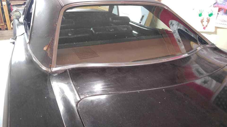 As restoration projects go, this doesn’t seem to be a bad one. The lower quarter panels, driver’s side floor, and trunk pan all have rust issues to address, although around the rear window looks clean. The owner is including a complete trunk pan, along with a new vinyl top, lip moldings, a good driver’s door and good deck lid in the deal.