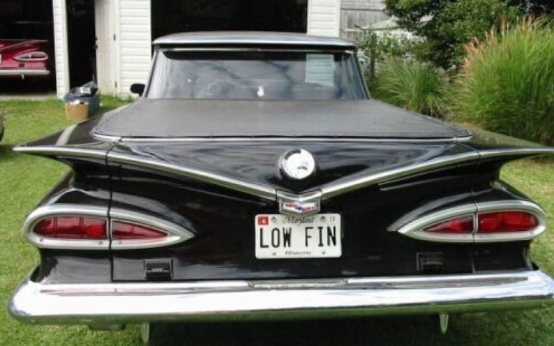 Friend bought a ’59 convertible while he was in college. Black, black and red insert in side trim, red interior, 348 triple carbs, 4 speed transmission, 2 inch lowering. Beautiful car as is this El Camino.
