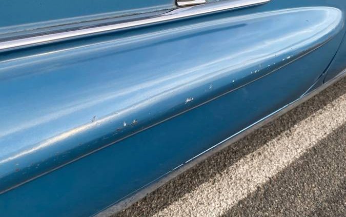 The initial surprise for me is this Oldsmobile’s body style – I wasn’t expecting four doors with this hot-rod engine. Nevertheless, the four-door hardtop style with its open, breezy greenhouse leaves a very stylish signature from any angle. The seller provides, “original survivor car. Rust free original paint (some touch-up jobs) Some patina but she still shines. Has some chips and scratches but it’s 60 years old“. The finish, which looks like Marlin Blue, is a great choice for such a significant automobile, it takes some of the stodginess out of what traditionally was considered a buttoned-down, near-luxury sedan (hardtop). There are, in fact, some parking lot nicks/touch-up spots but it’s all minor in the scheme of things.
