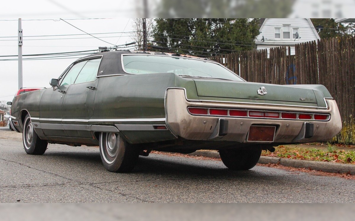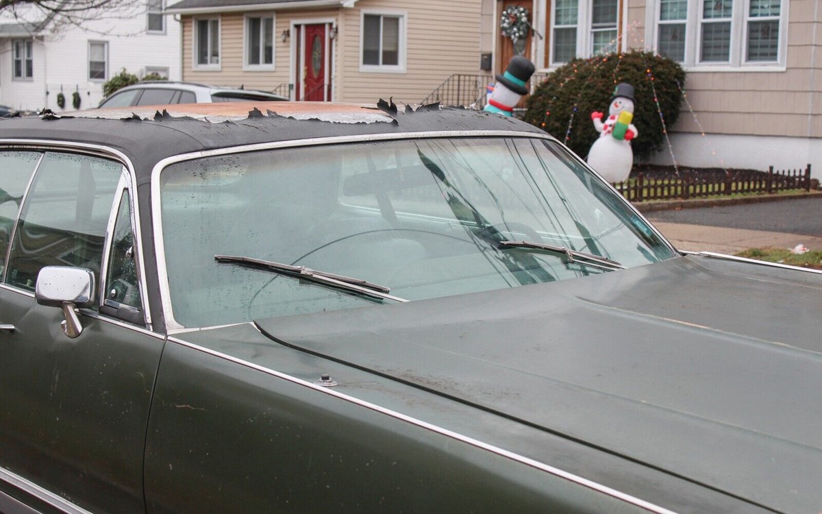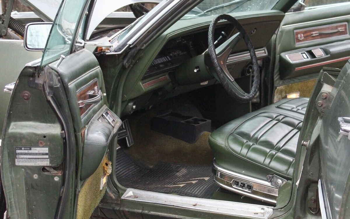 The Fuselage design was made from 1969 through 1973 and this Forest Green New Yorker Brougham with a green vinyl top and green interior is a “triple pickle” according to the seller, and now I’ll never look at a 1970s tri-color-green Chrysler product the same again. You can see that this car needs a lot of cosmetic help.