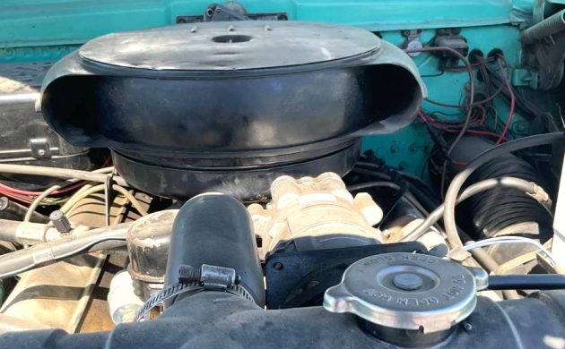 Sales for the Patrician – offered only as a 4-door sedan – were just over 9,000 units in 1955. Demand would drop by two-thirds in 1956 before the last bell rang. This Packard is said to be in excellent condition, and the close-up photos provided by the seller tend to support the claim. We’re told this car has a 352 CI, which was the forerunner of the 374, so has the factory motor been changed out?
