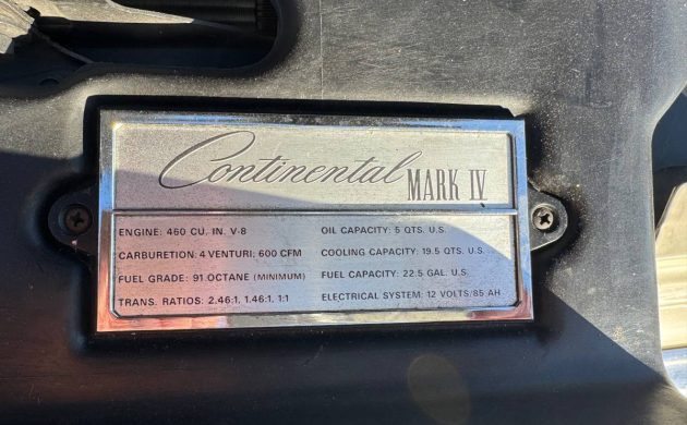 Why the sale? The seller tells us, “I no longer have the time to drive or tinker with my classics, and I need the garage space.” Well, he’s going to free up a ton of real estate once this Mark IV departs its berth, and that should be the next owner’s concern. This Lincoln is in such nice shape that it needs to be garaged. And that will be the first question to answer: Will it fit?