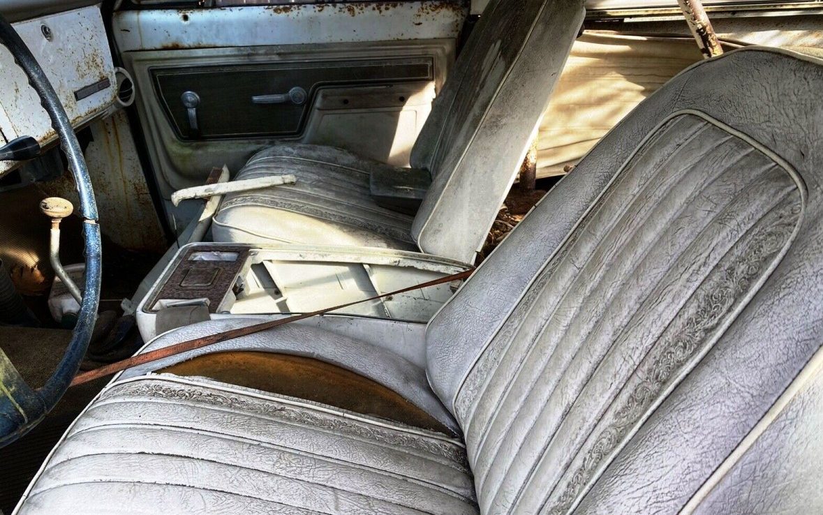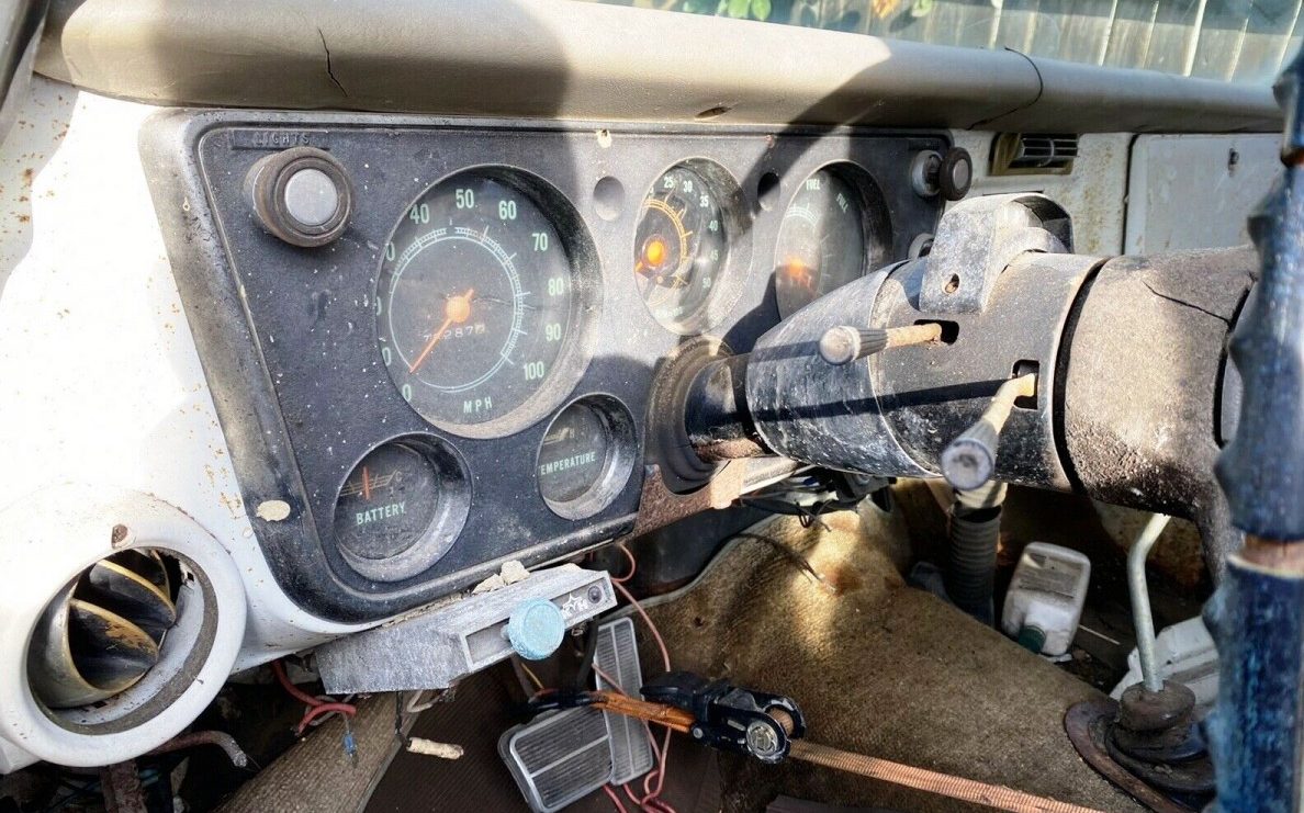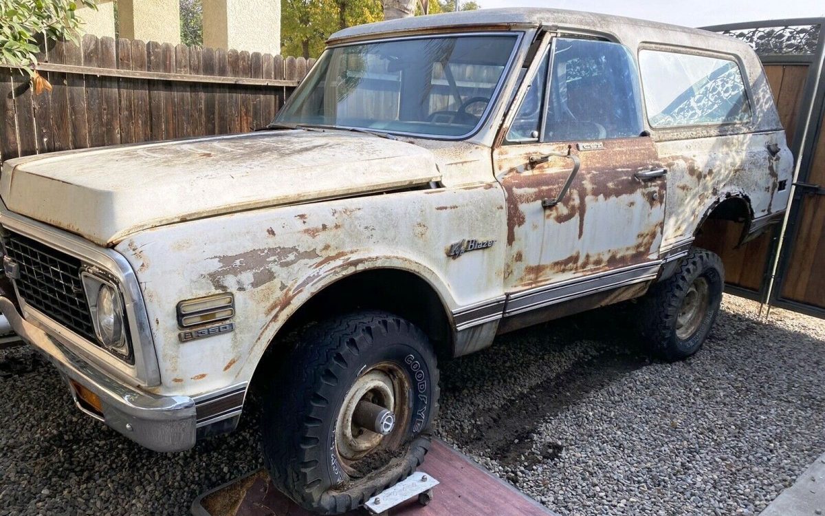 The hot vintage 4×4 truck market makes a rising tide that’s boosting old SUV values everywhere. Suddenly that rusty hulk in the back yard looks more like a commodity than a “someday” project. Sadly this 1972 Chevrolet K/5 Blazer in Stockton, California lacks a title, but the fairly complete and well-appointed Chevy would certainly make a nice retro project for someone who can sort out the paperwork. White with a parchment interior, the highest trim-level Cheyenne CST (Custom Sport Truck) package, air conditioning, and 350 V8, the four-wheel-drive classic demonstrates General Motors trucks adaptation from utilitarian commercial haulers into capable family adventure vehicles with car-like features. The listing here on eBay has attracted at least four bidders and a market value above $4800. No part of this truck is ready for daily use, so plan on a complete overhaul.