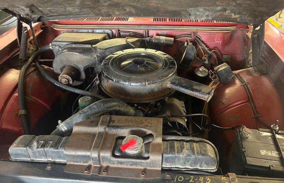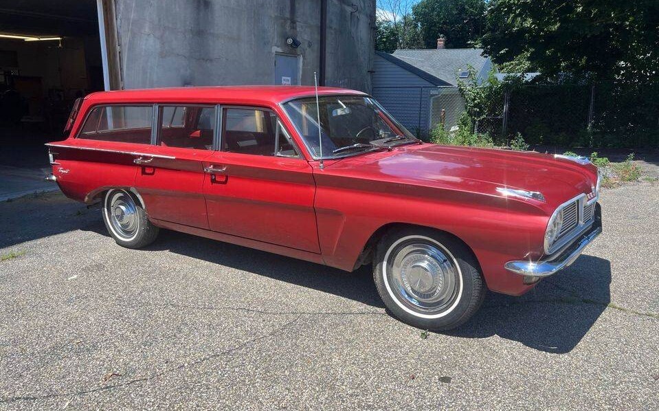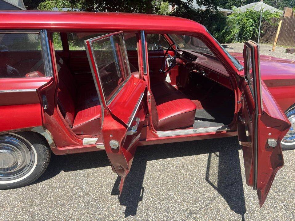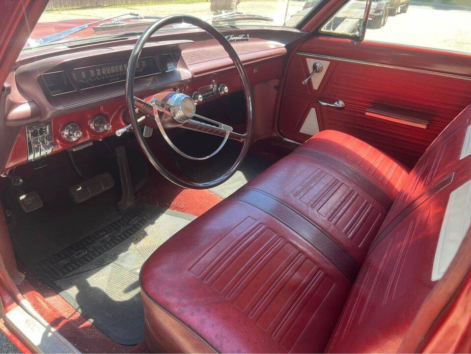 Production of the Tempest Custom Safari wagon was low for the day, coming in at 6,500 units for 1962. That should equate to a dwindling number of examples still on the road 60 years later, with the seller’s red-on-red wagon being one of them. The transport looks to be original, but no claim is made to that effect. The paint looks good but there appears to be a small amount of filler and primer on the north end of the passenger-side rear wheel well.
