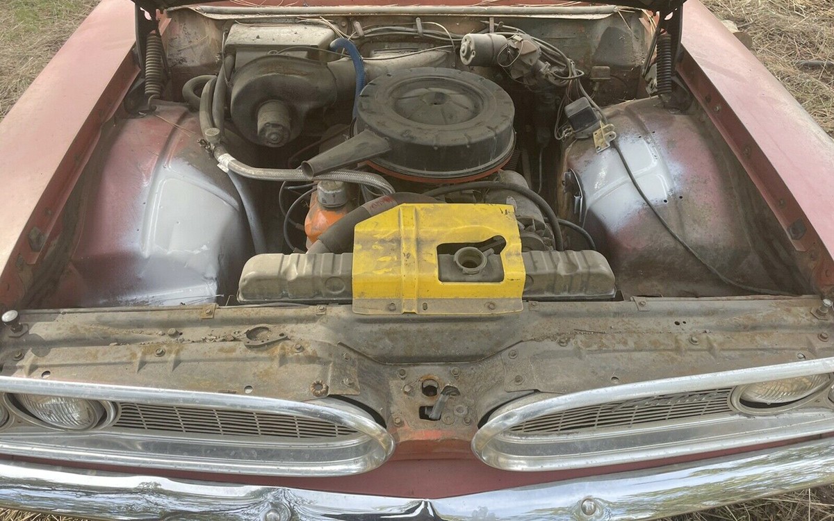 Many of you know about the rear-mounted transaxle in the Tempest with a flexible driveshaft that became known as a “rope drive”, even though it wasn’t that flexible. It was very unique and just as unique is the engine in this car. This is Pontiac’s 194.55 cubic-inch slant-four known as the Trophy 4, which is basically half of a 389 V8. It would have had 120 horsepower. This one hasn’t run in at least 2.5 decades now so plan on some work here, too. Any thoughts on this Tempest wagon? I won’t ask if it’s worth saving because it’s 100% worth saving!
