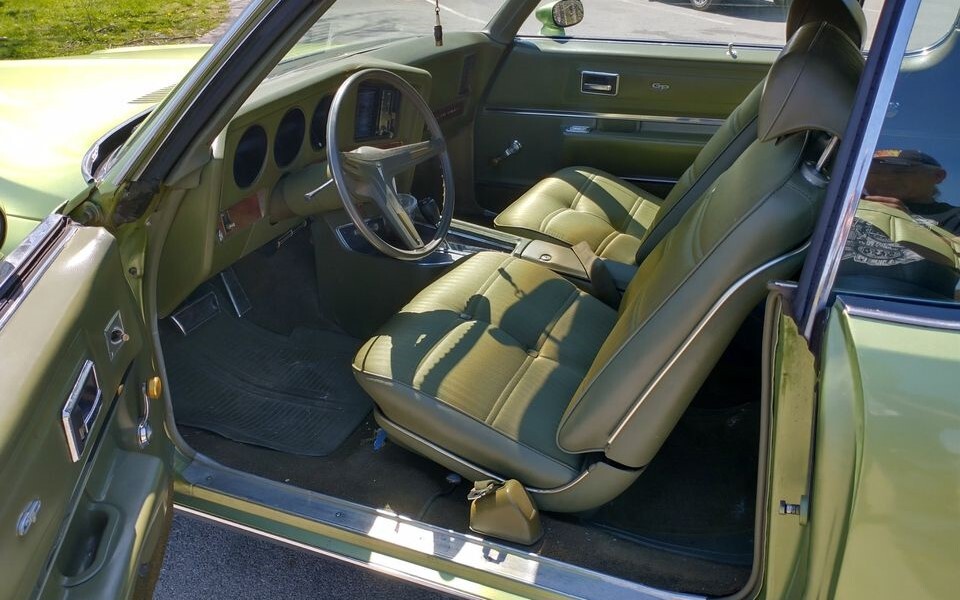 I don’t mind the color at all! Compared to todays plastic bubbles this old girl exudes style and muscle! My only question is the front scripts says 455 under Grand Prix, yet sellers states it to be a 400? He says he bought from a 80 year lady, so I doubt she would have added that script? Could it be a 455 placed in a J series?