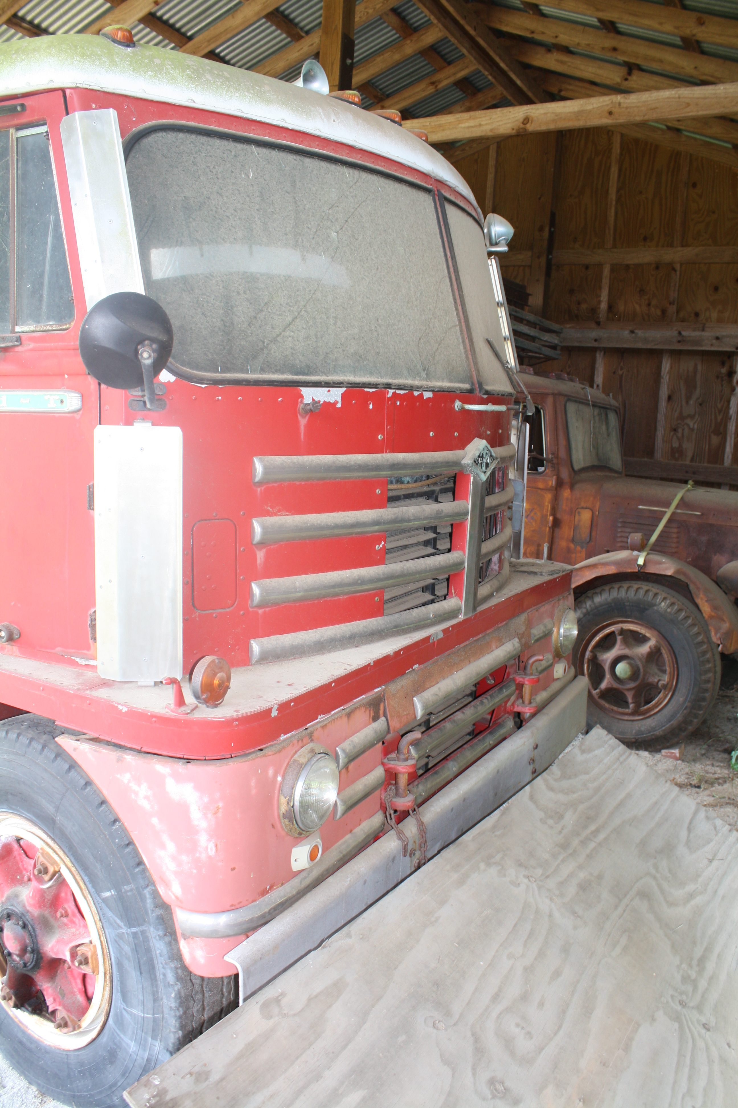 There were lots of covers in the 1950s. In the White I remember the huge warm dog house in the middle of the cab. It was great in the winter, not so much in the summer. Have a look at some pictures I took of some cool old trucks.