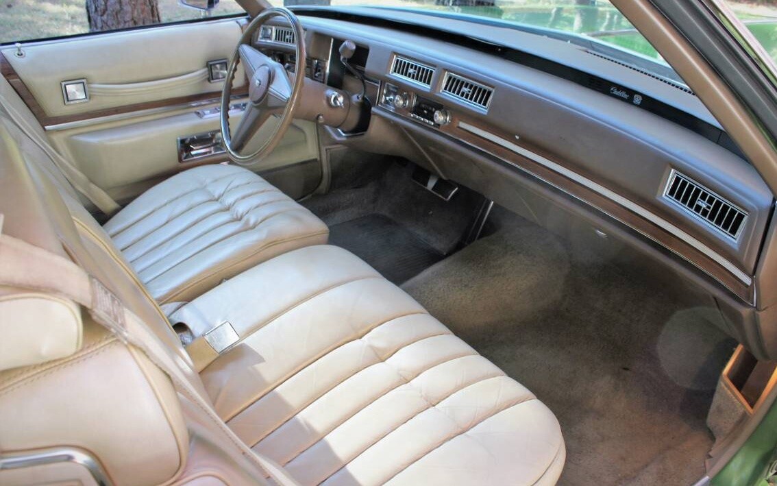 We’d like to thank reader Pat L. for spotting this one and bringing it to our attention! The seller says this De Ville was driven into a barn in Washington State in 1985, and it sat there for the next 37 years with several other Cadillacs and other vintage collectible cars until it was woken up earlier this year and shown some love before being offered for sale. The Persian Green is said to be a rare color to find on this model, and the paint is stated as being original. The finish was treated to a good cleaning and waxing, with the result showing just a very few minor flaws. The plastic body parts between the body and rear bumper were replaced and don’t fit quite as well as the originals, but they’re said to be far better than the brittle pieces that were removed.