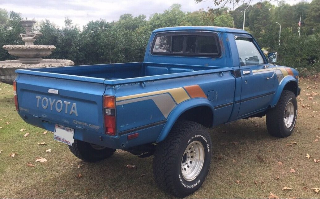 Toyota Motor Corporation first introduced North America to their pickup trucks in 1964, with the stateside launch of the Toyota Stout. Featuring a 1.9L 3R engine, a ladder frame chassis with independent coil spring front suspension, and leaf spring rear suspension, the new compact truck was designed to handle and ride like a car. Hoping to compete with the recently released small pickups from Datsun, Toyota sold only 4 units in the first model year. A slight redesign meant enlarging the cab for full-size Americans, but the Stout’s days were numbered and it was replaced by the Hilux in 1969. Fast forward to 1978 and the introduction of the 3rd generation Hilux, known in America simply as the Toyota pickup. One year later the automaker rolled out the first 4WD version of the model, featuring a dual transfer case and a solid front axle with leaf springs. In 1981, a larger 2.4L 22R engine was introduced, making 95 hp and 122 ft-lb of torque. These elements combined to create a formidable compact off-roader that could also provide economical transportation. Our feature vehicle, found here on eBay, proves that you don’t need a full-size rig to have fun in the mountains.