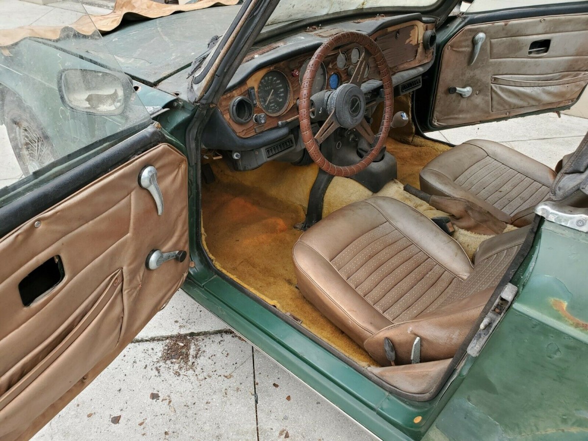 The seller notes the rocker panels also sport zero rust, and given the prevalence of surface rust in areas like the engine bay, it’s clear this TR6 was kept in an area where it might otherwise be completely rotten were it not for the undercoating that was applied. The seller is located in Florida, but doesn’t specify if that’s where the Triumph has lived. It actually looks like a northern car that was brought to Florida, a plausible scenario when you factor in the prevalence of snowbirds relocating to the Sunshine State from the northeast for the last several decades. The TR6 does still run and drive, but it doesn’t drive very far because the master cylinder for the clutch is missing.