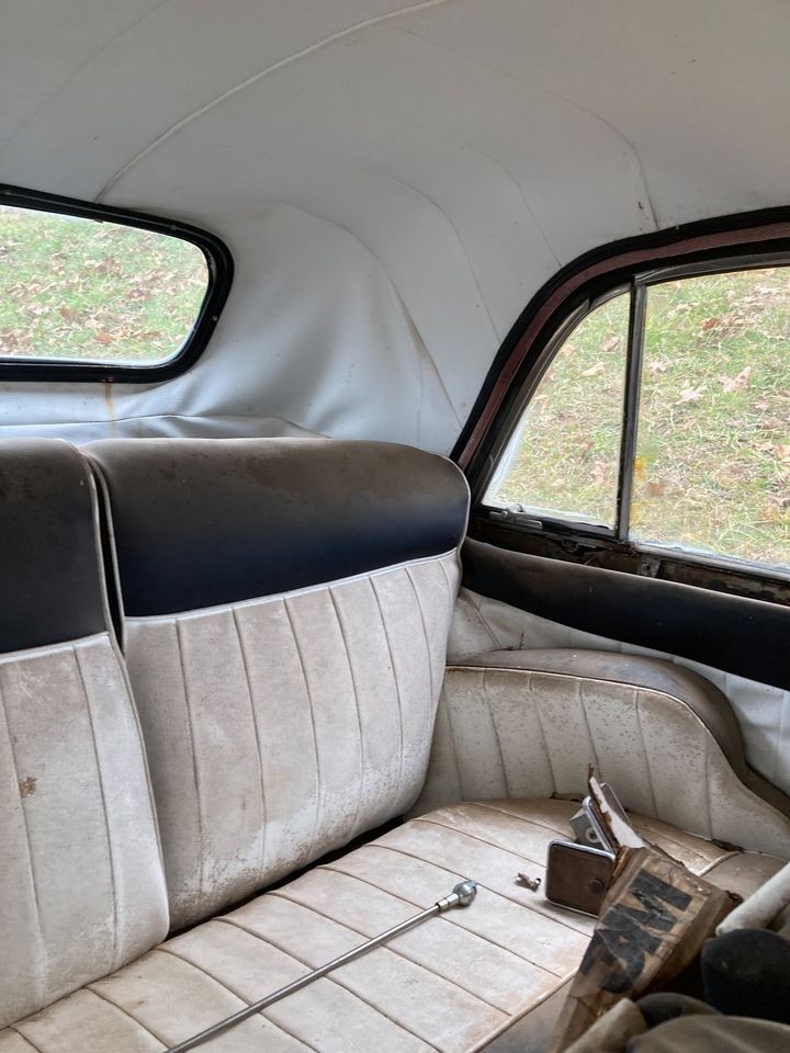 The brakes also need some work after sitting for so long. Among the other items to get your wrenches wet on, the power windows are hydraulic and powered by a pump. My grandfather told stories of working on cars outfitted with these early systems. When a hose breaks, you will get one hard-to-clean-up flood of hydraulic fluid. Other than those issues, the car appears to be solid. Much of the chrome and stainless trim pieces are still good. However, the front bumper will need to be re-plated. That may set the new owner back the cost of a small house in a fashionable area at current rates. Inside we see that the radio is still there along with all of the trim. Unfortunately, the interior vinyl is showing signs of mold damage. Hopefully, that doesn’t mean that moisture has been trapped in the car. It makes you wonder what the floor pans look like.