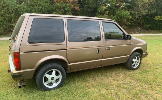 This is one of those vans that those of us in the know recognize instantly thanks to the dual exhaust pipes sliding out from beneath the back bumper and the turbo script on the fenders. Otherwise, this looks like a standard Voyager, made even more boring with the brown paint job. Talk about sleeper potential: lower it slightly, throw on the wheels from a Daytona Turbo Shelby, and call it a day. The seller notes that there is some rocker rust, but that’s to be expected for a vehicle from the northeast. Honestly, I’m surprised there’s not more rust to contend with. I don’t love the aftermarket wheels, but the original wheels are included,